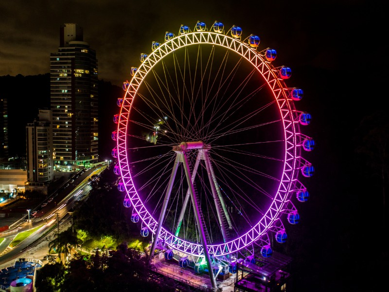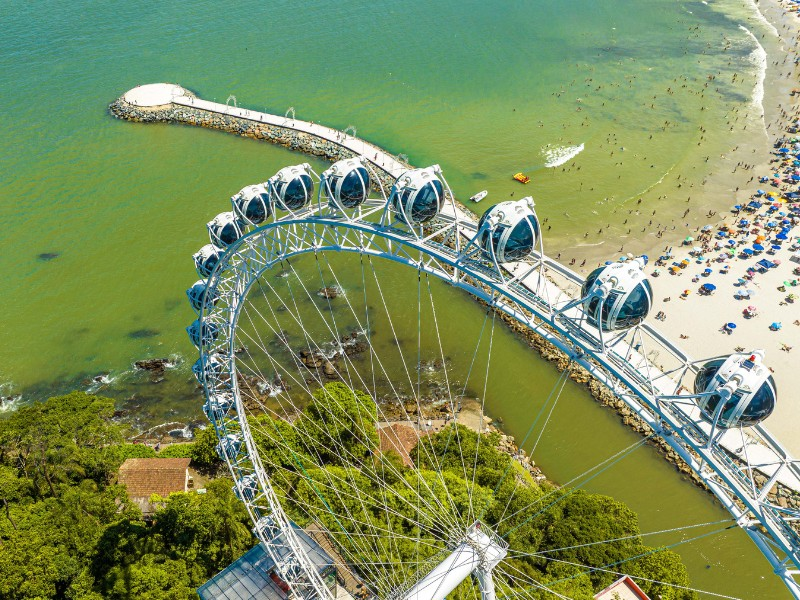Venha descobrir a Roda Gigante de Balneário Camboriú, o ponto turístico mais icônico da cidade que oferece uma vista incomparável. Com seus 65 metros de diâmetro e alcançando 82 metros de altura no ponto mais alto, esta atração proporciona uma perspectiva única de Balneário Camboriú, onde o oceano se encontra com arranha-céus modernos e a exuberante Mata Atlântica.